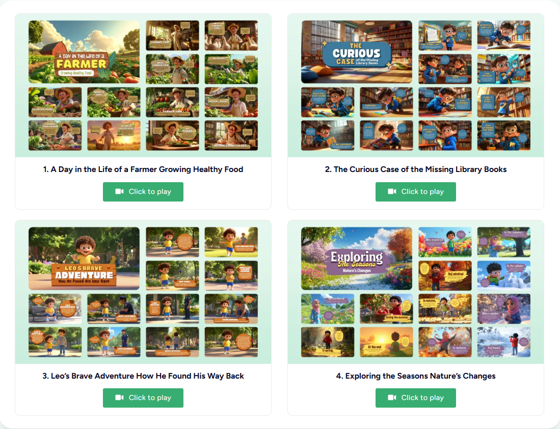 These educational videos cover a wide range of topics, from math and language to environmental awareness, all brought to life through captivating 3D animation.