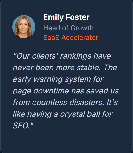 Critical Page Downtime Alerts: Protect your money pages from ranking losses with immediate notifications.