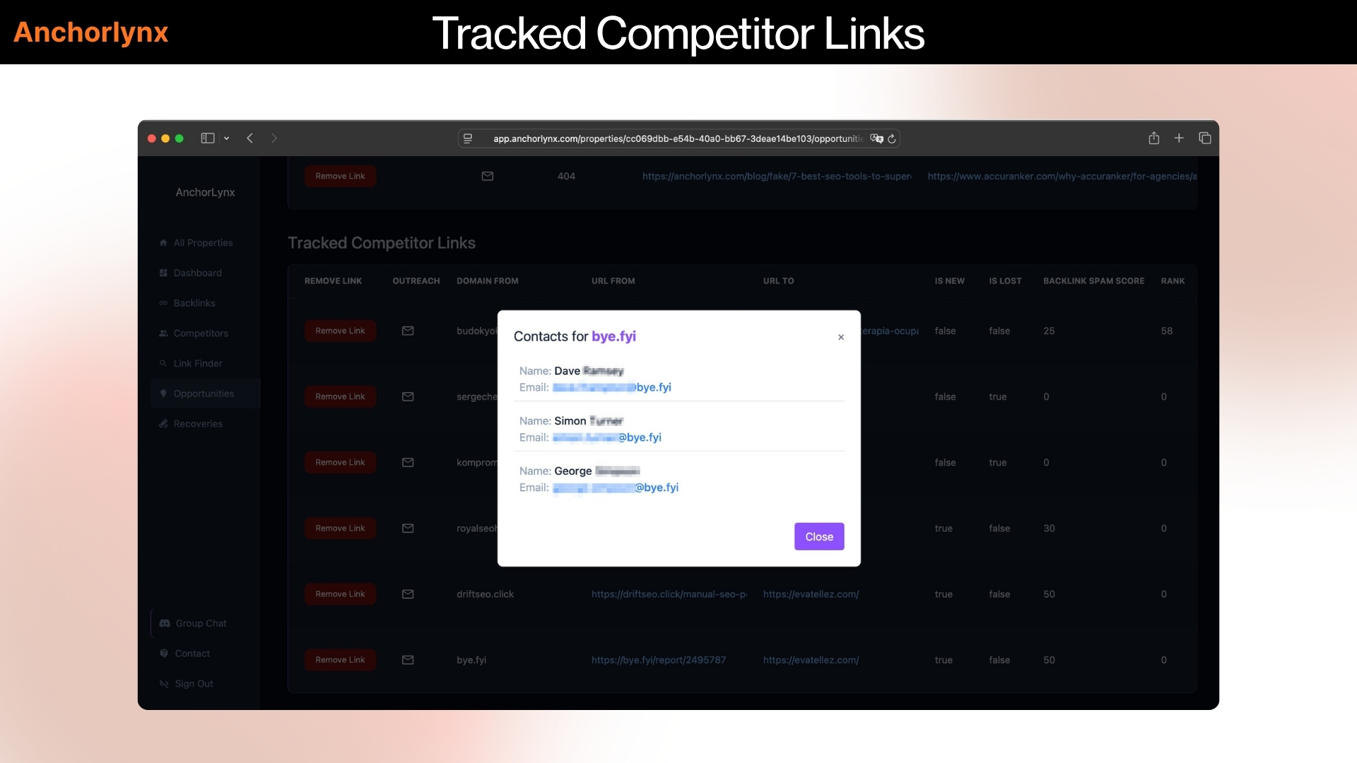 What’s disappearing or where opportunities lie. AnchorLynx gives you eyes on every spammy backlink, every broken link or dead page, every competitor move – so you act first, not last.