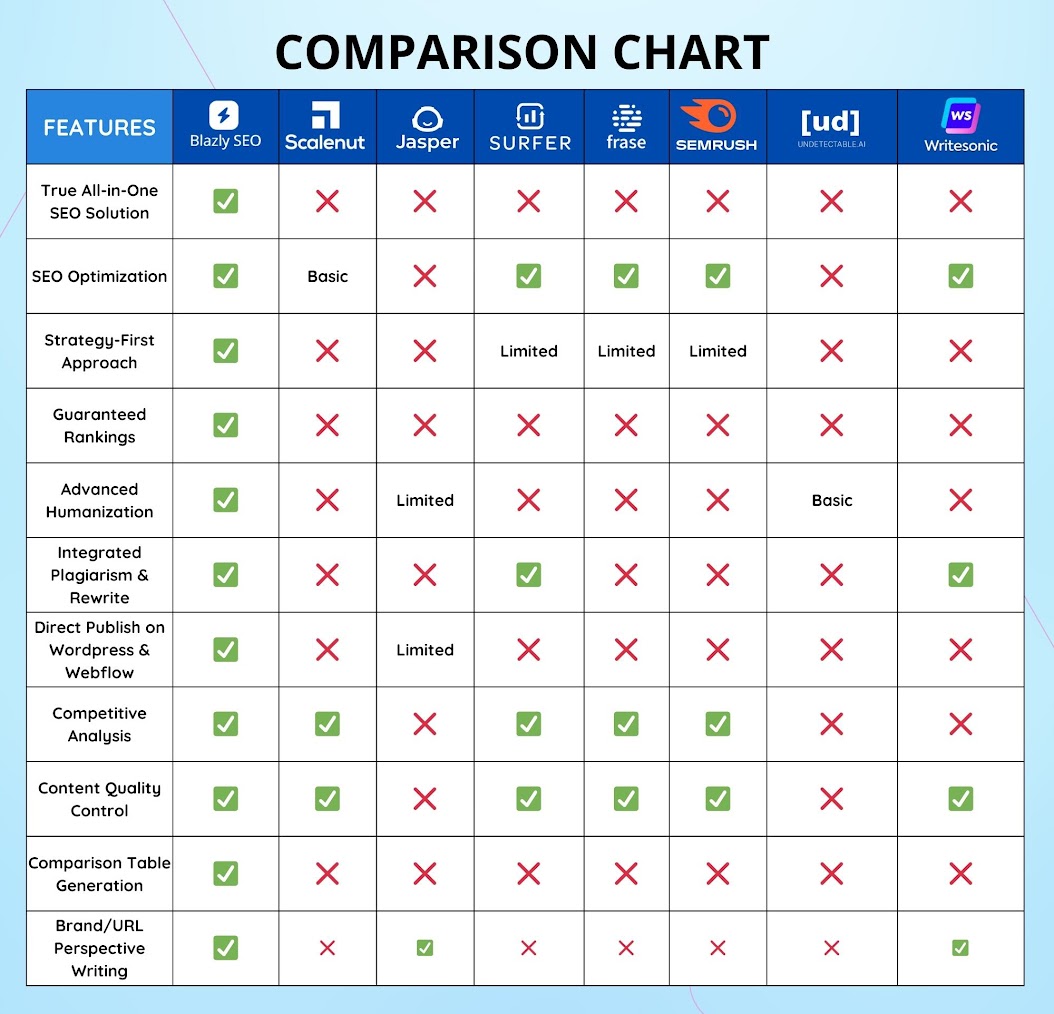 Alternative to SEMrush, Jasper.ai, Surfer SEO, Frase.io, Undetectable.ai, and Writesonic