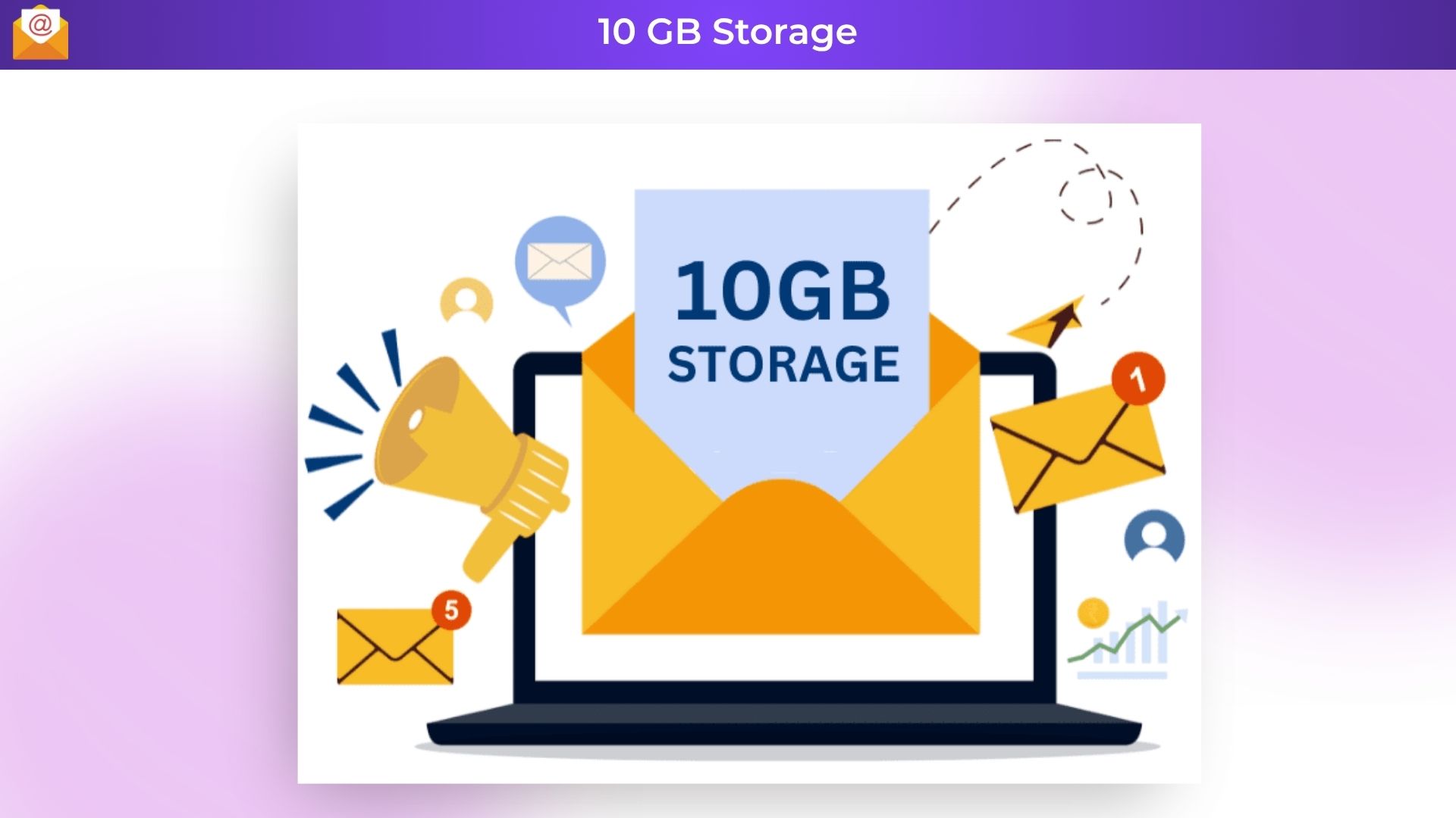 Each email account has 10 GB storage. That’s enough for most situations. It would be enough for over 133,000 emails that are about 75 kilobytes each!