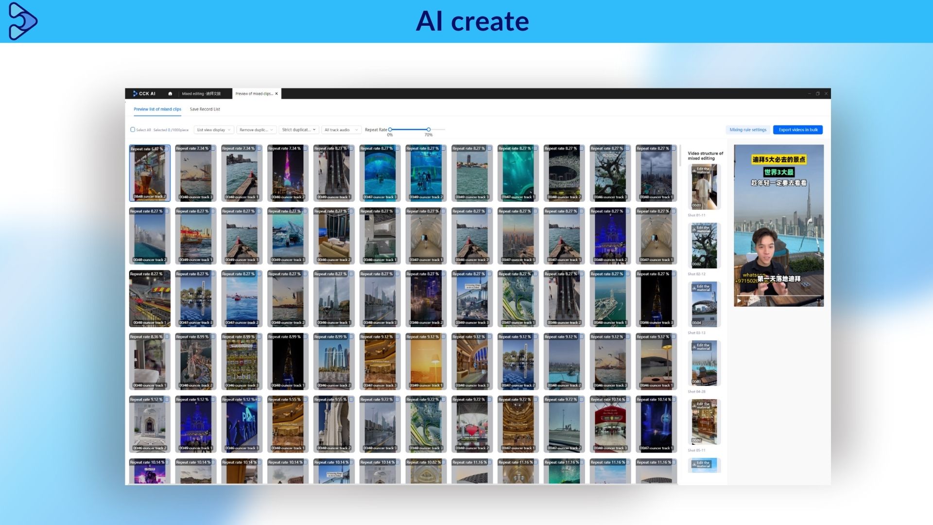 -Generate up to 1,000 unique videos in 10 minutes, automatically remixed and deduplicated to stay freshāeven for the same product.