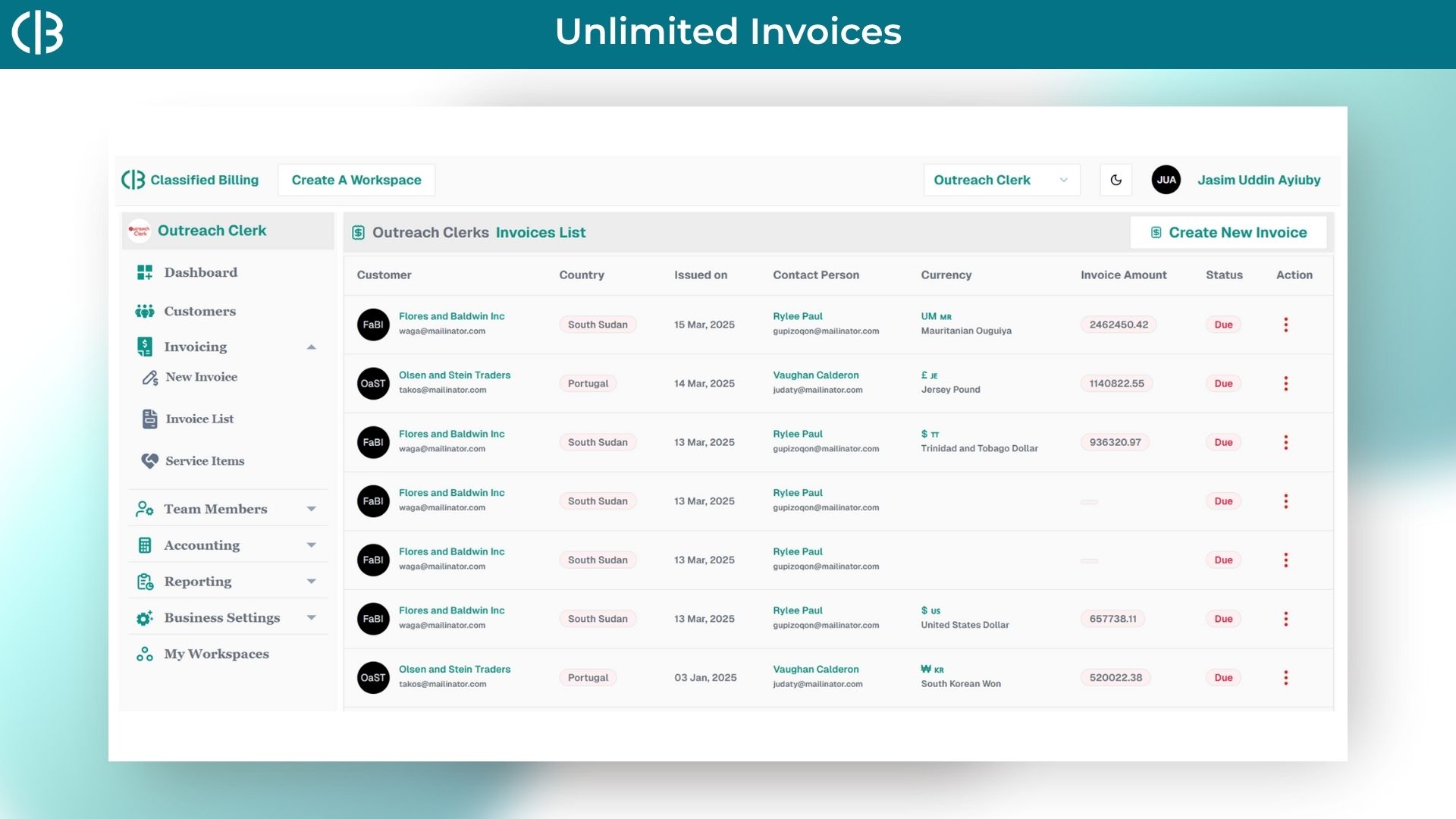 Classified Billing gives you everything you need: real-time payment tracking, multi-currency support, automatic payment reminders, and customizable professional templates. Generate branded PDF invoices instantly and get back to doing what you love; running your business, not chasing payments.