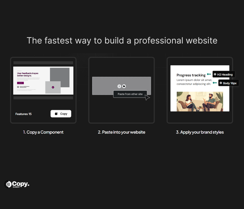 Using CopyElement is simple. Browse the components in our library, click to copy the desired component, and then paste it directly into your Elementor page builder. From there, you can modify the component as needed to fit vour design.