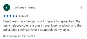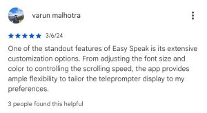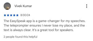 Q2:What is EasySpeak and how does it work ? Ans. Easy Speak is a teleprompter app that displays scrolling text on a screen in front of a speaker, allowing them to read a script while maintaining eye contact with the audience to capture a perfect shot without any lacking in the speech.