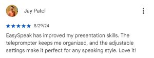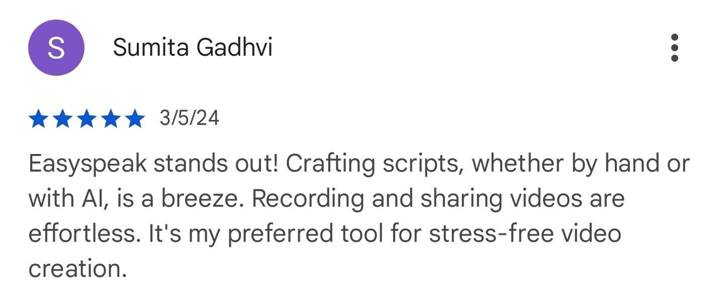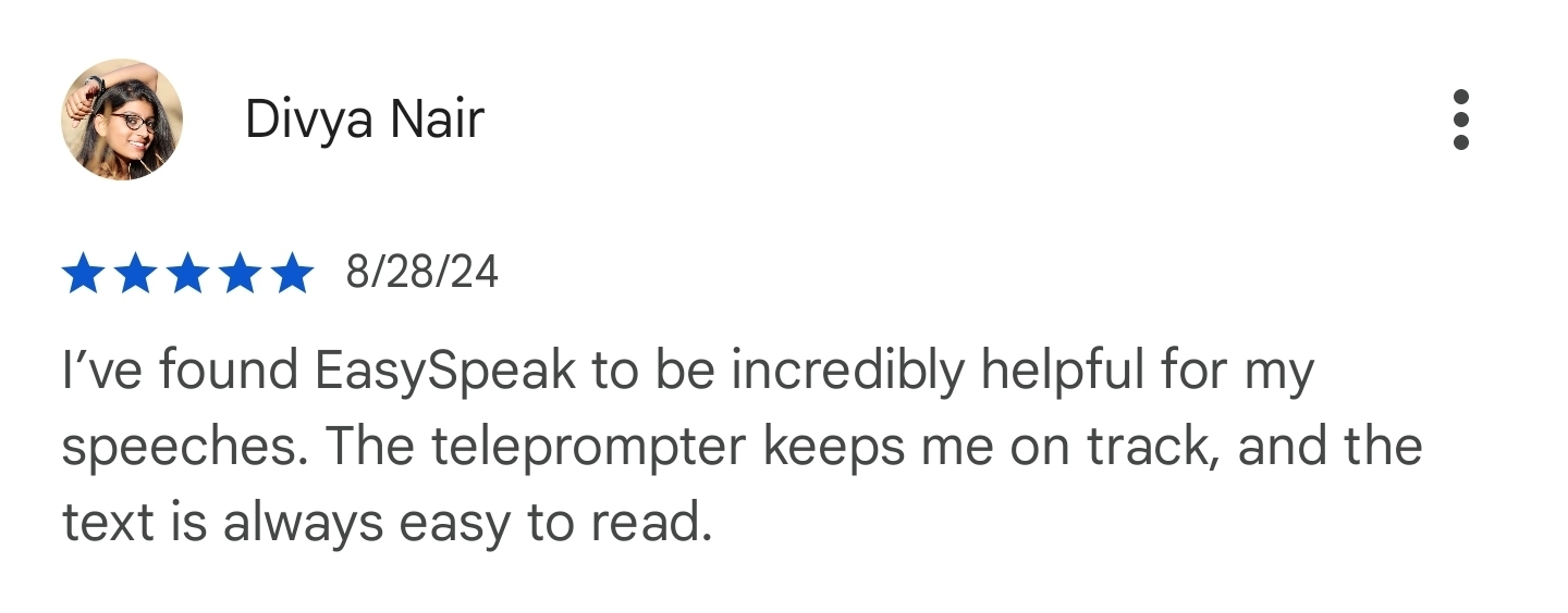 I started EasySpeak to help content creators, speakers, and professionals deliver flawless video presentations with AI-powered teleprompter technology. Fun tidbit: I love tech innovations that simplify life, and EasySpeak is a testament to that passion!