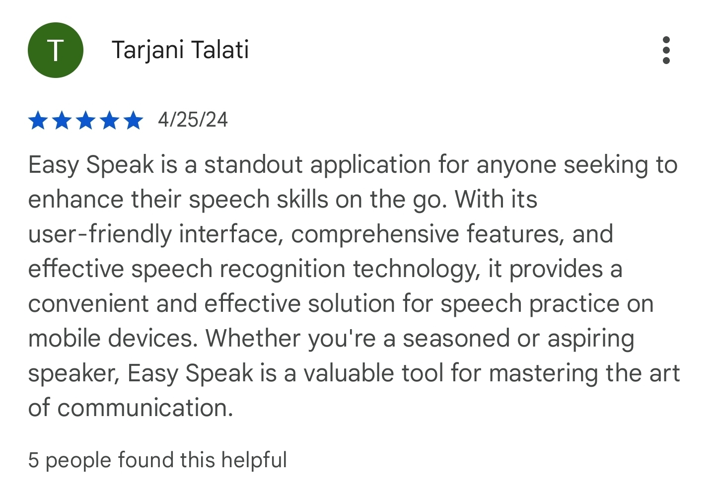 Q7. How does EasySpeak ensure my data privacy? Ans. EasySpeak is designed to operate without storing any information on servers. All app functionality is managed locally on your device, ensuring your use of EasySpeak is private and secure.