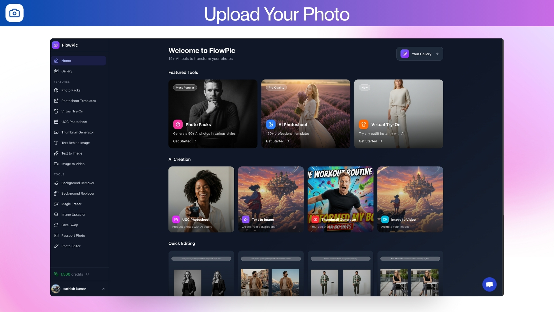 Meet FlowPic, an AI headshot generator. A simple web app that puts 14 smart photo tools into one place so you stop struggling with multiple tools.