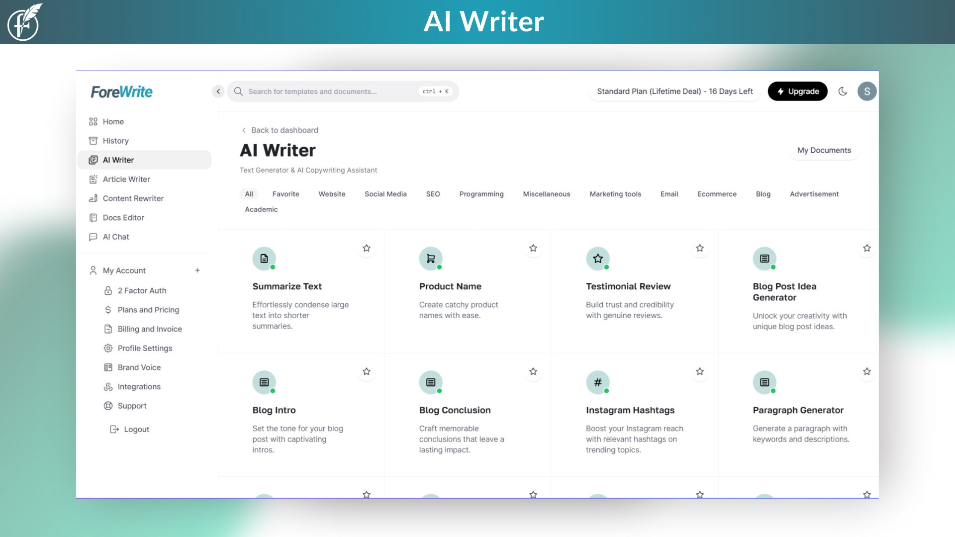 Introducing the Forewrite lifetime deal—a content ai generator that is designed to help you create high-quality content quickly and easily.