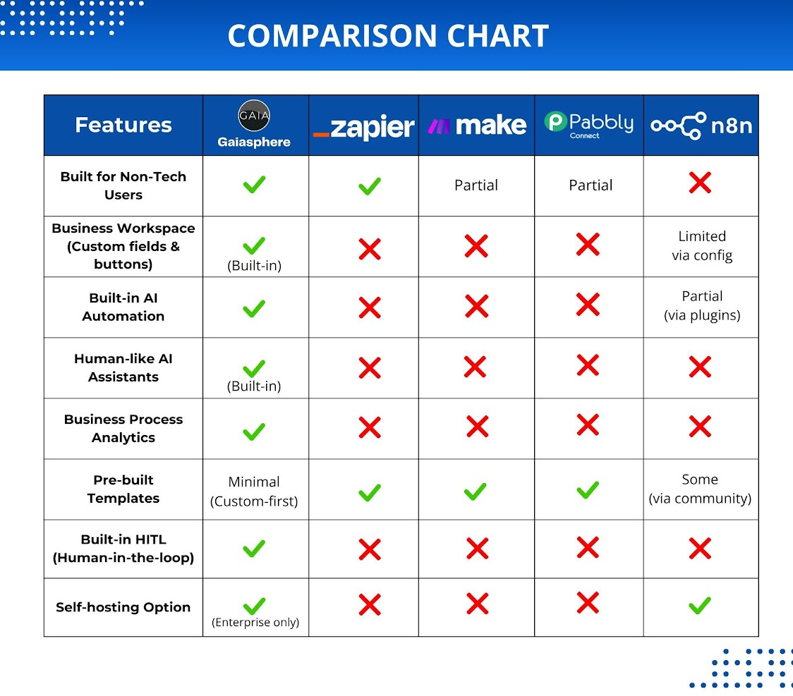 That’s why GAIA is more than just another workflow tool. It’s a no-code platform for AI-powered business process automation (AI BPA)—designed for solopreneurs, startups, and teams that want to build smarter, not harder.