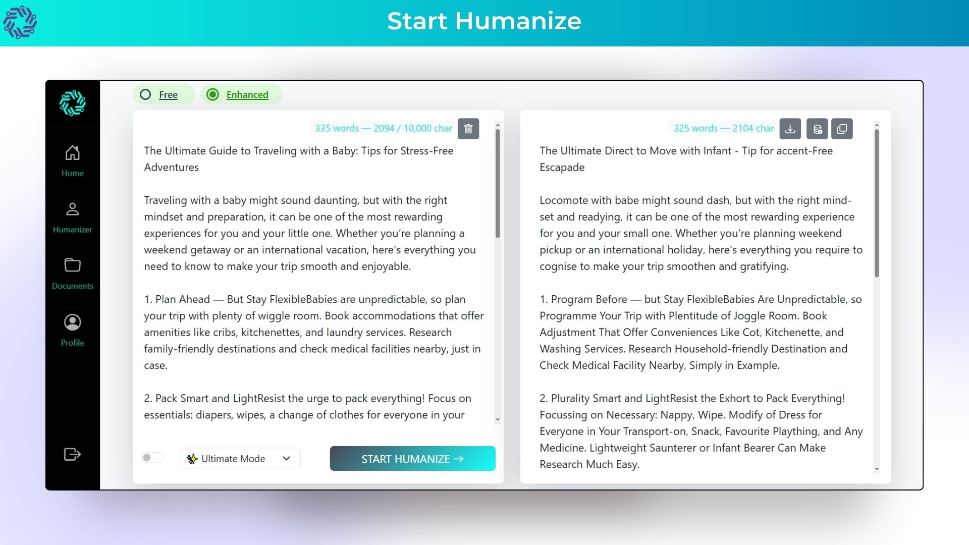 Unlike typical spinners or rewriters, HumanizerAI.tech uses advanced language modeling and deep stylistic restructuring to preserve your original intent while rewriting in a way that reads as if a professional copywriter wrote it.
