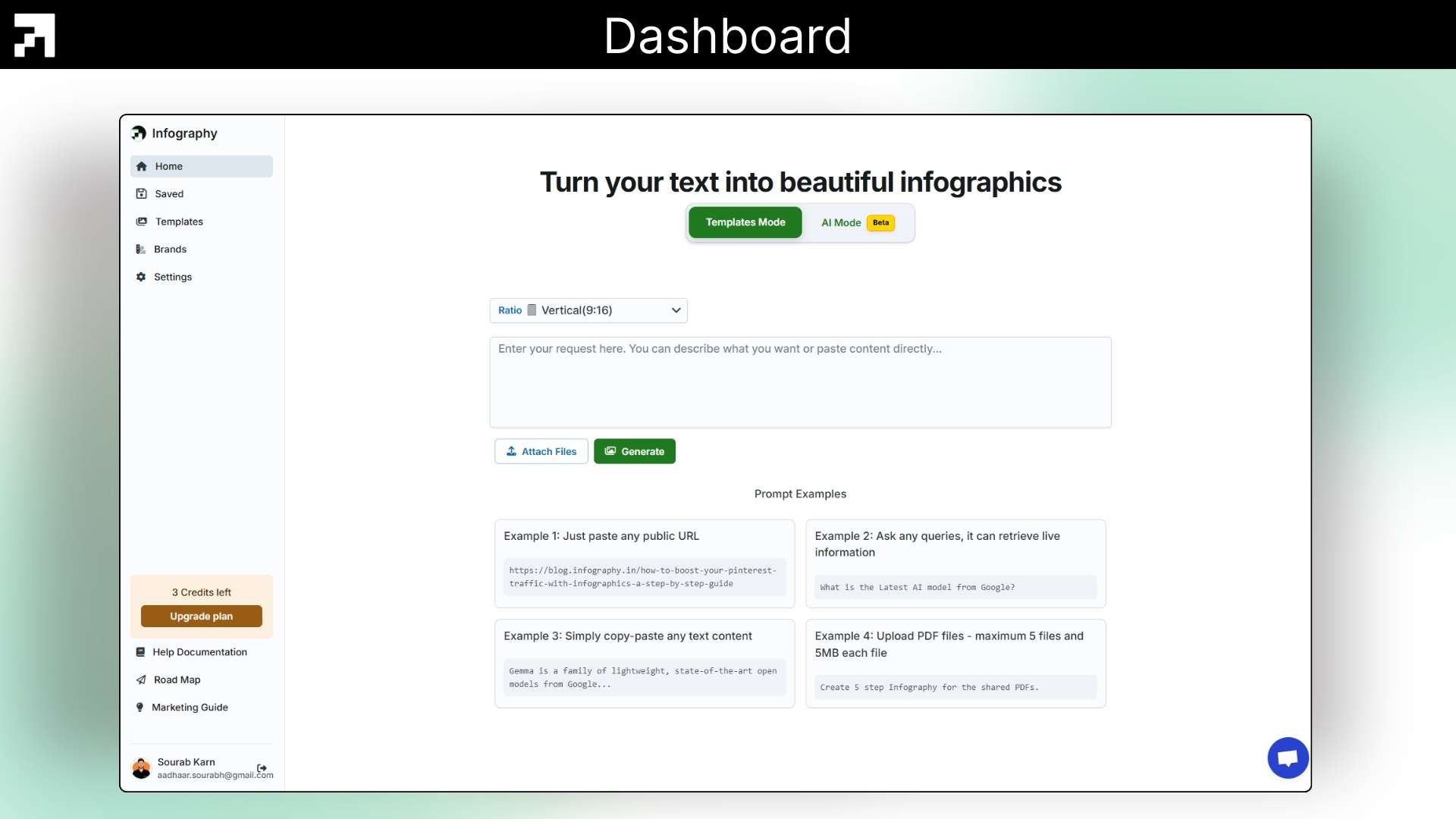 Infography make this process simple and fast. Instead of struggling with complicated design software, you can turn your data, text, or ideas into ready-to-use visuals in just a few clicks.