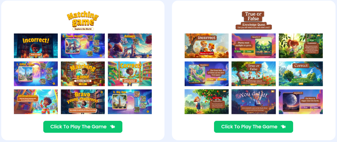 - Unleash your creativity to craft unique kids’ quizzes, games, videos, and books like never before!