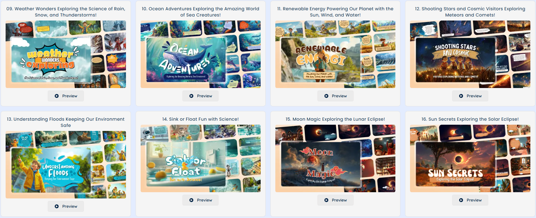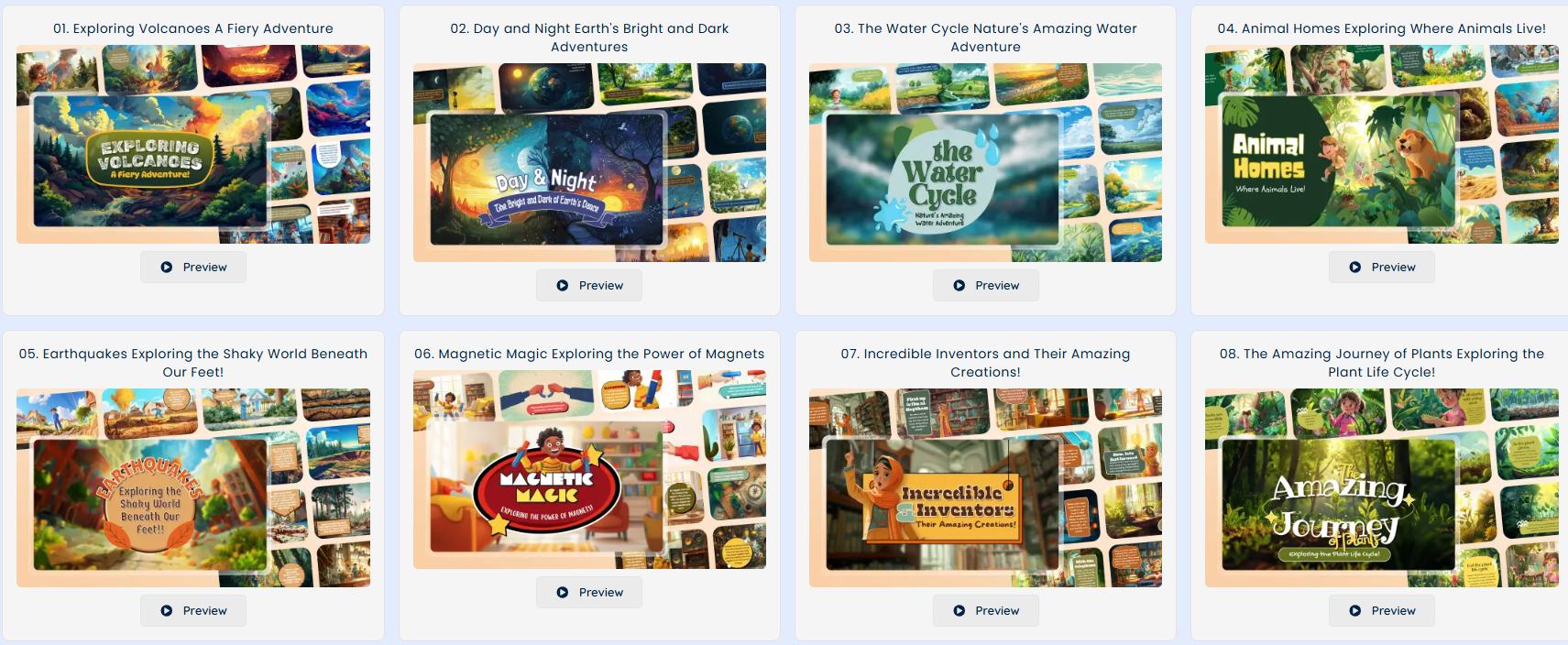 From volcanoes to the solar system, our vibrant animated videos make complex science topics easy to understand and exciting to explore. Each video is kid-friendly, visually engaging, and packed with amazing facts.