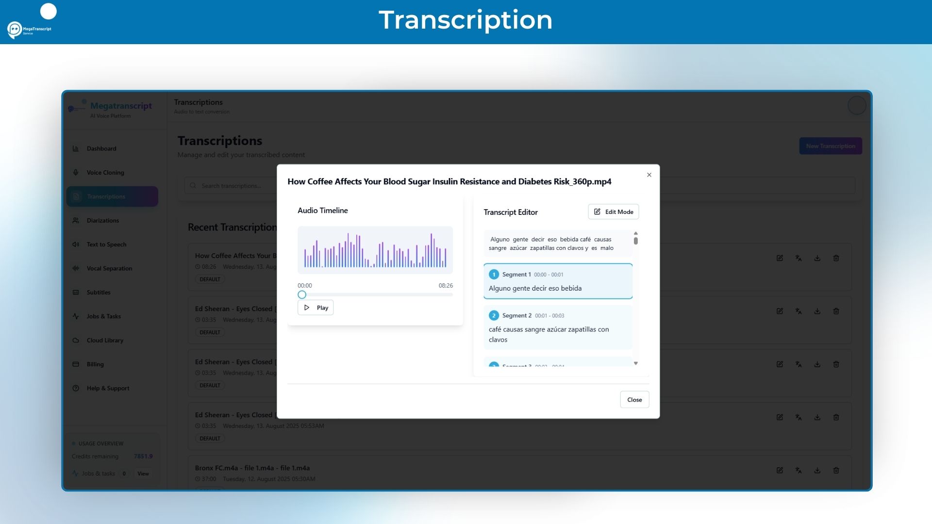 I create content in both Spanish and English, and Megatranscript handles both languages like a pro — even when I mix them.