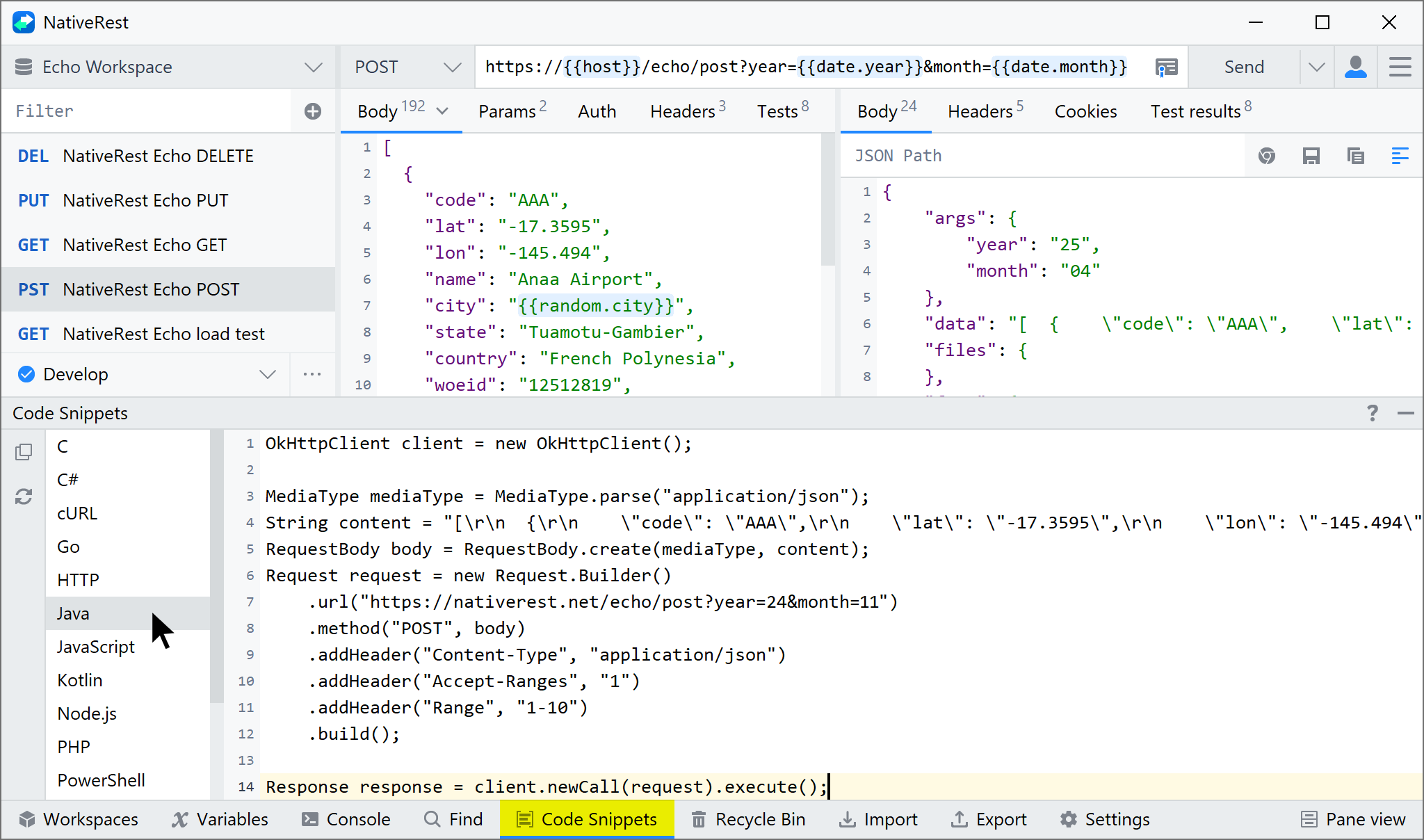Unlock unparalleled development flexibility with NativeRest’s code snippet generation and custom HTTP methods.