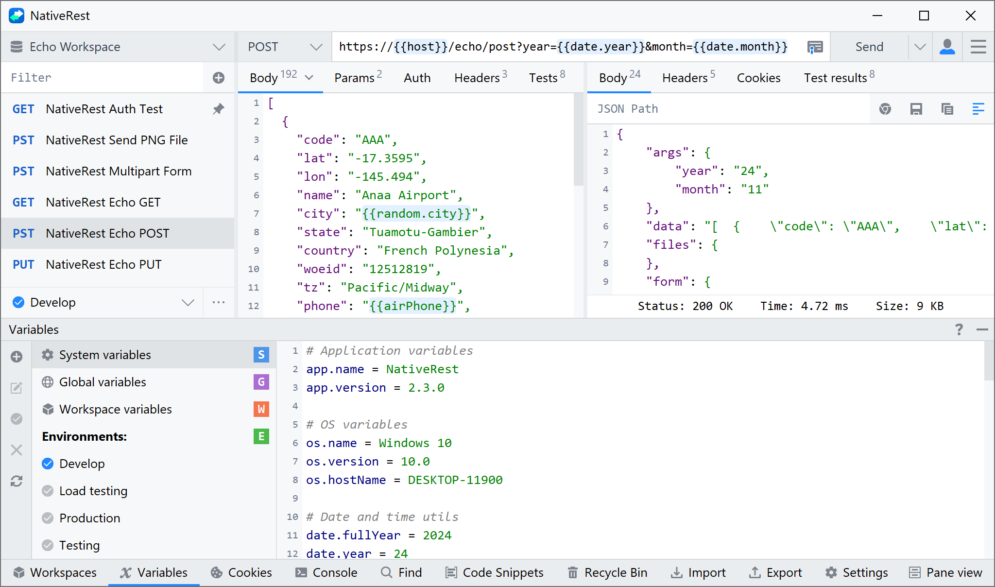 NativeRest combines an easy-to-use interface with advanced functionality like environment variables, authentication helpers, and code generation.