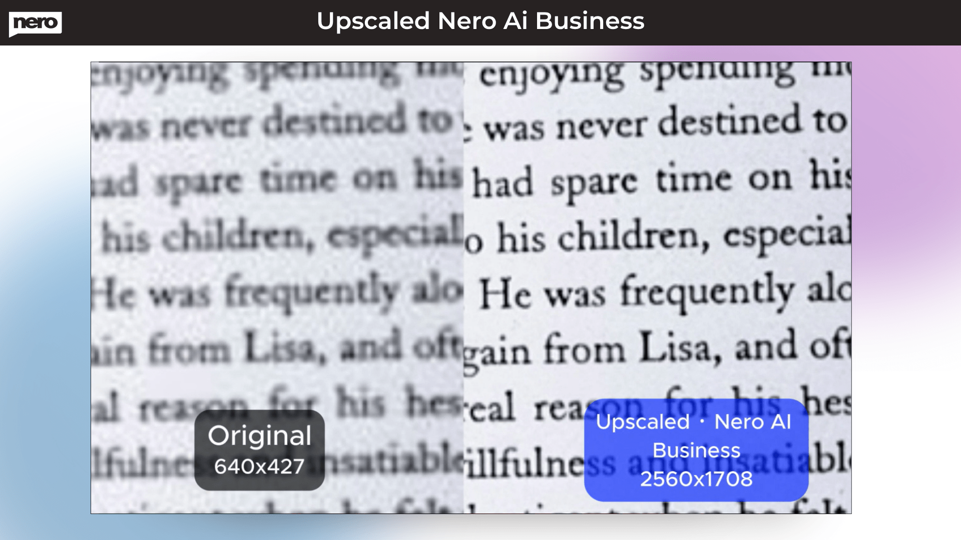 Product images are crucial for my online store. Nero AI Image Upscaler has saved me so much time and money by allowing me to enhance product photos right from my PC.