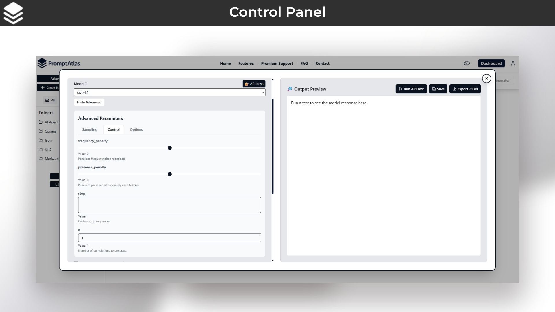 You can instantly test and fine‑tune prompts right in the browser with real‑time API integration and expert controls, temperature, max tokens, stop sequences, and more.