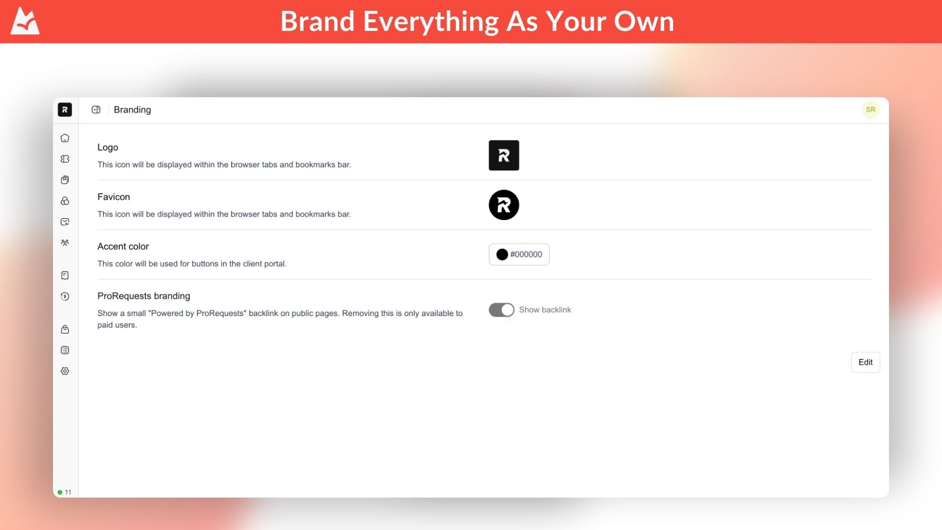ProRequests gives you complete white-labeling capabilities so clients never see our name – only yours. Customize every visual element from colors and buttons to logos and favicon, creating a portal that feels like custom-built software for your agency.