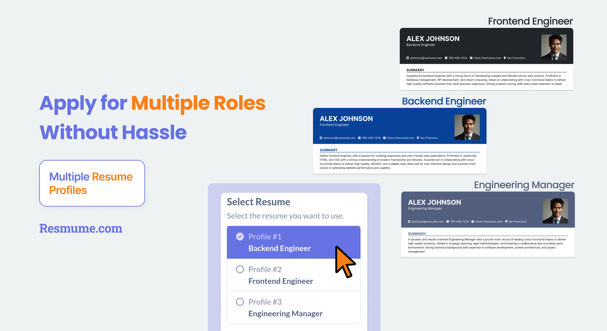 Customized role creation : Easily create multiple versions of resume tailored to different job applications.
