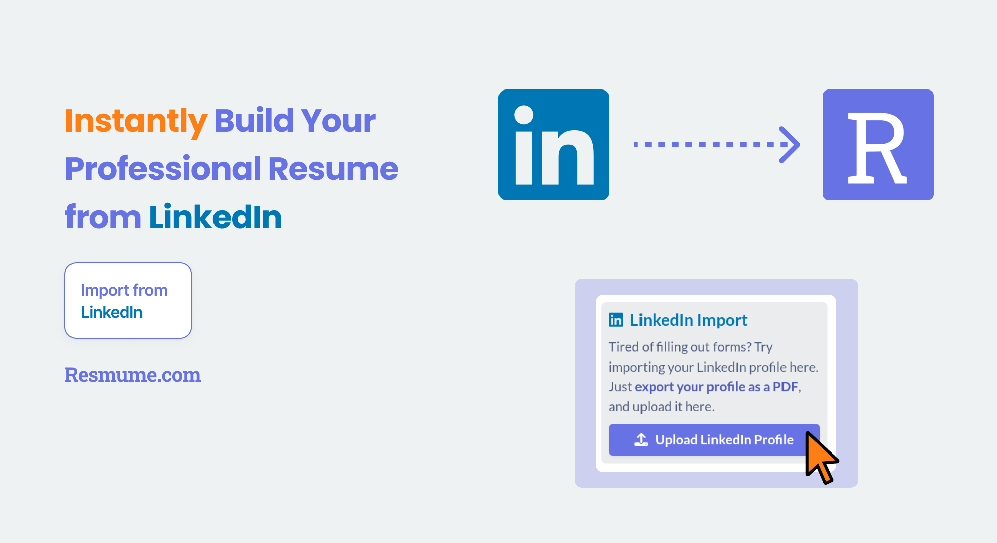 Seamless data import : Import information from LinkedIn or existing resumes to save time.