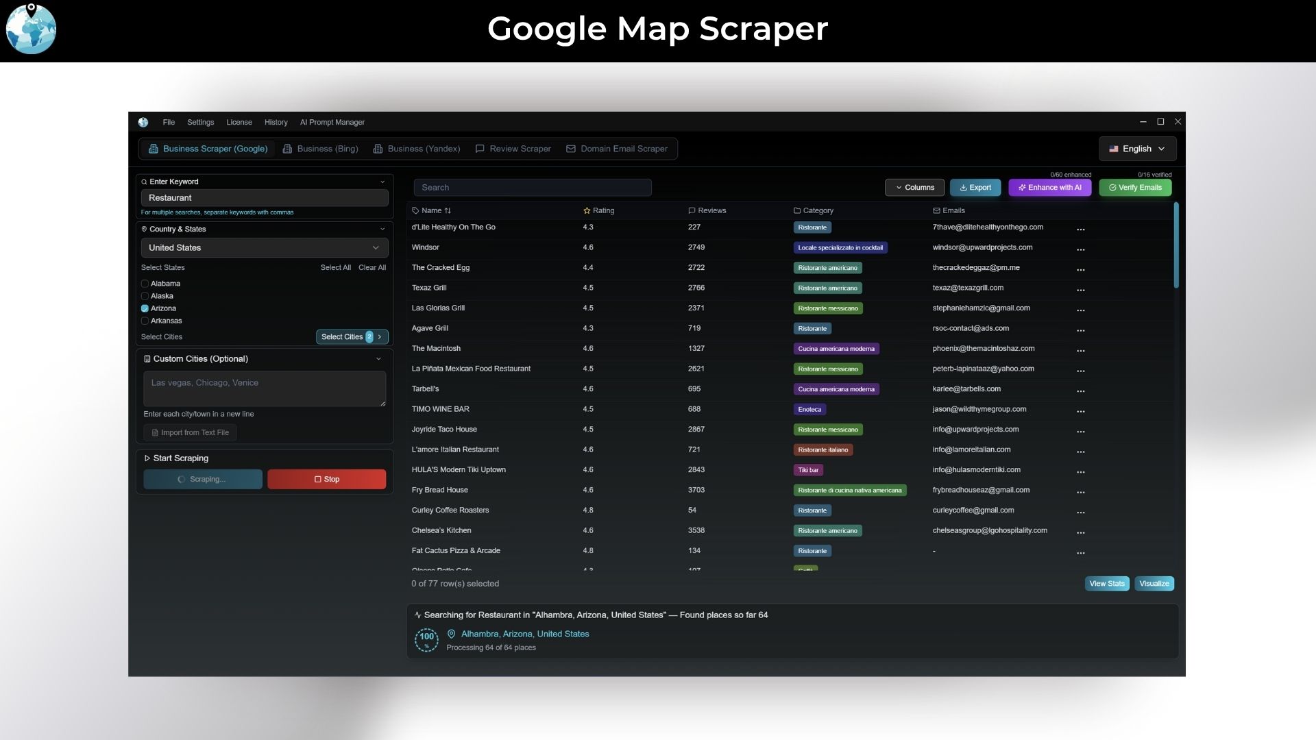• Fresh, Accurate Data : No more outdated lists. ScrapeTheMap gives you real-time, location-specific business information.