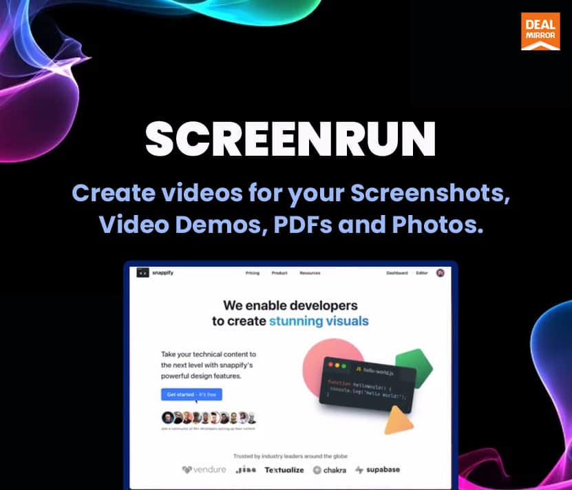 Look no further! Meet ScreenRun Lifetime Deal, is a user-friendly video editing tool that transforms screenshots and screen recordings into stunning videos in seconds.