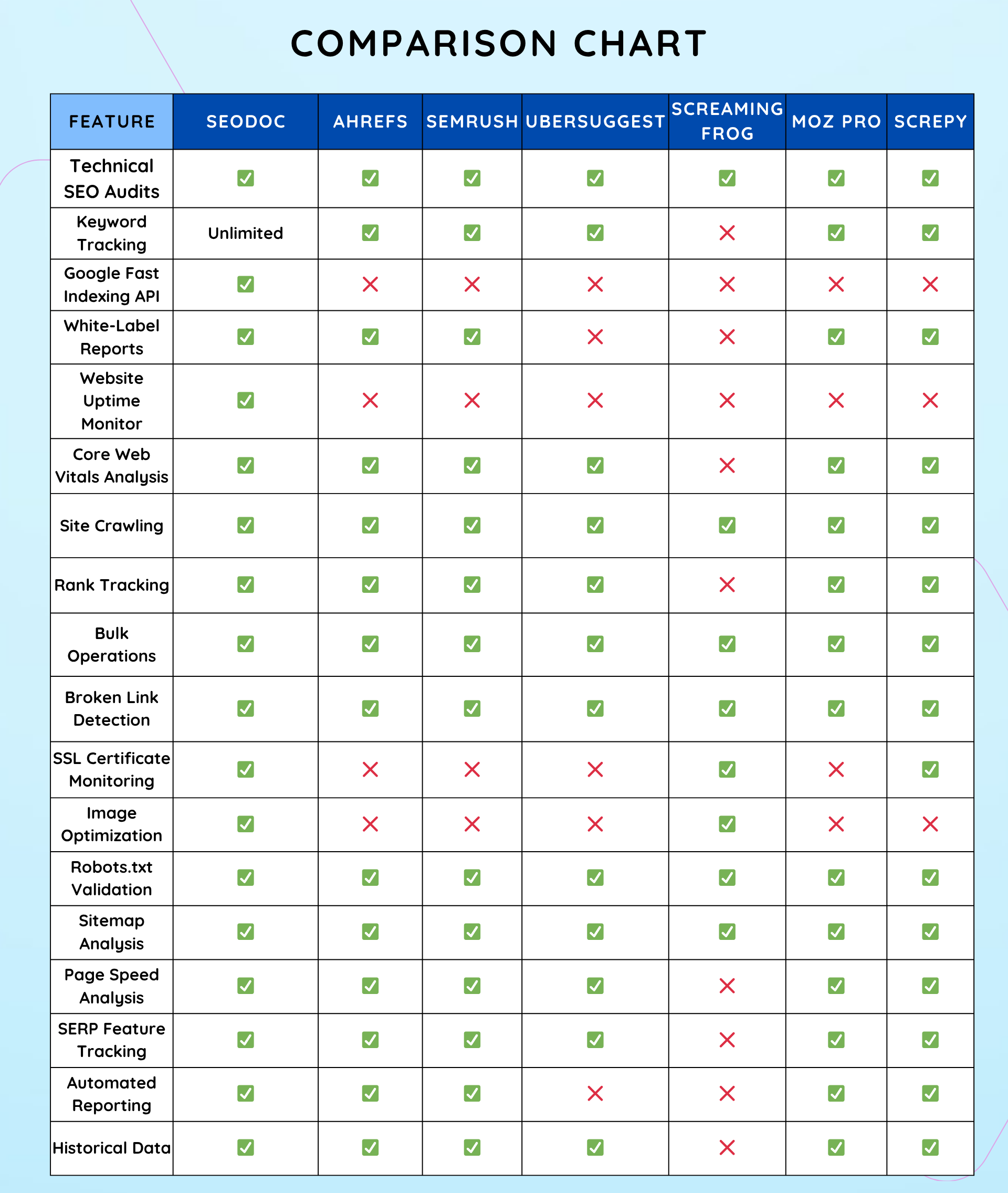 That’s why I built SEODoC.io — to bring together the speed, power, and simplicity I needed as a practitioner, all in one intuitive platform. From deep technical audits and Core Web Vitals analysis to Google’s Fast Indexing API and white-label reporting, SEODoC delivers every essential SEO capability in a single place.