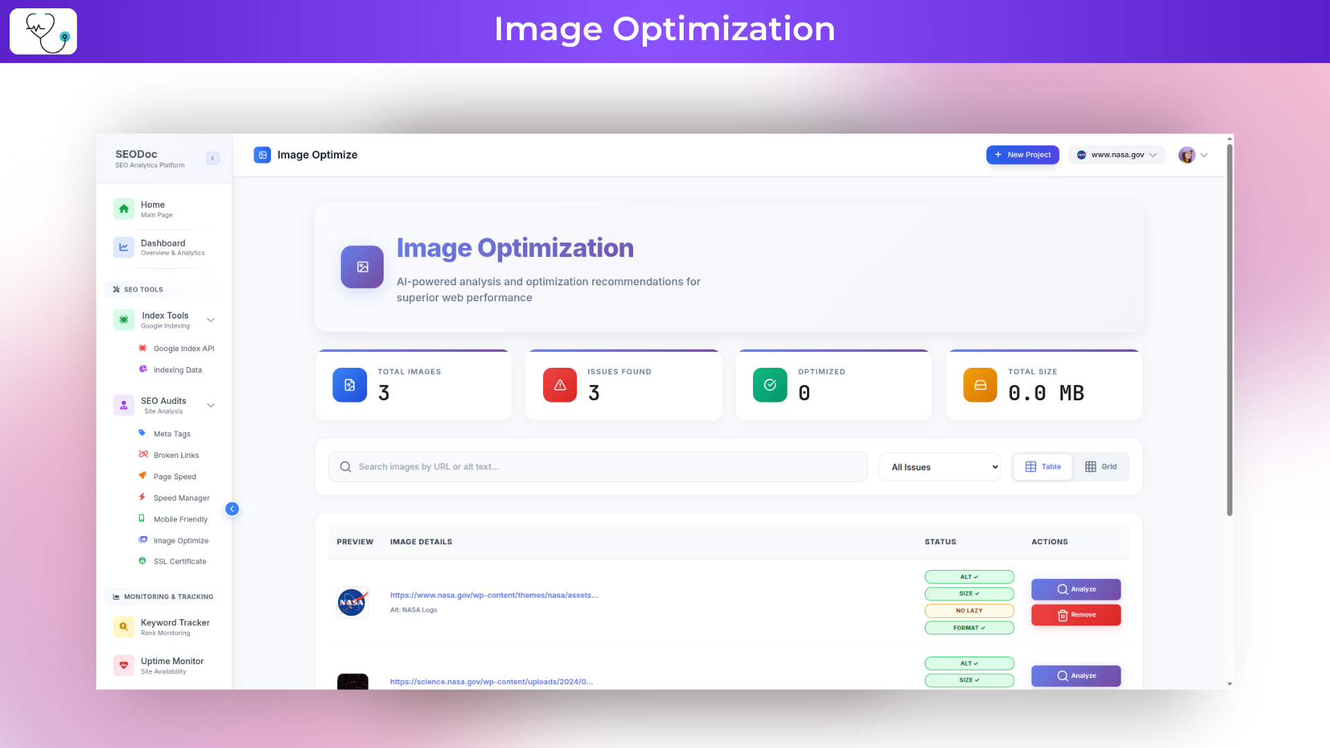 Meet SEODoC, seo software lifetime deal. In one simple dashboard, you can scan tens of thousands of pages for broken links and slow‑loading images, watch your rankings climb with real‑time keyword tracking, and even ping Google’s Fast Indexing API so new content goes live in hours, not weeks.