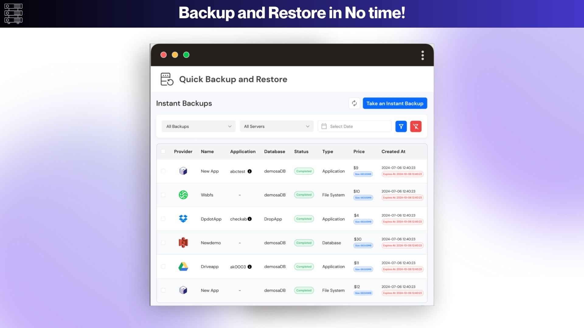 – ServerKade offers a flexible backup system where you can add an external backup provider and set up automated backups and restore accordingly (restore is coming soon).