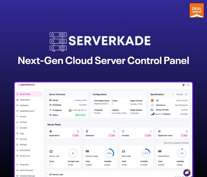 Meet ServerKade, cloud server control panel lifetime deal, a platform designed by developers for the developers.
