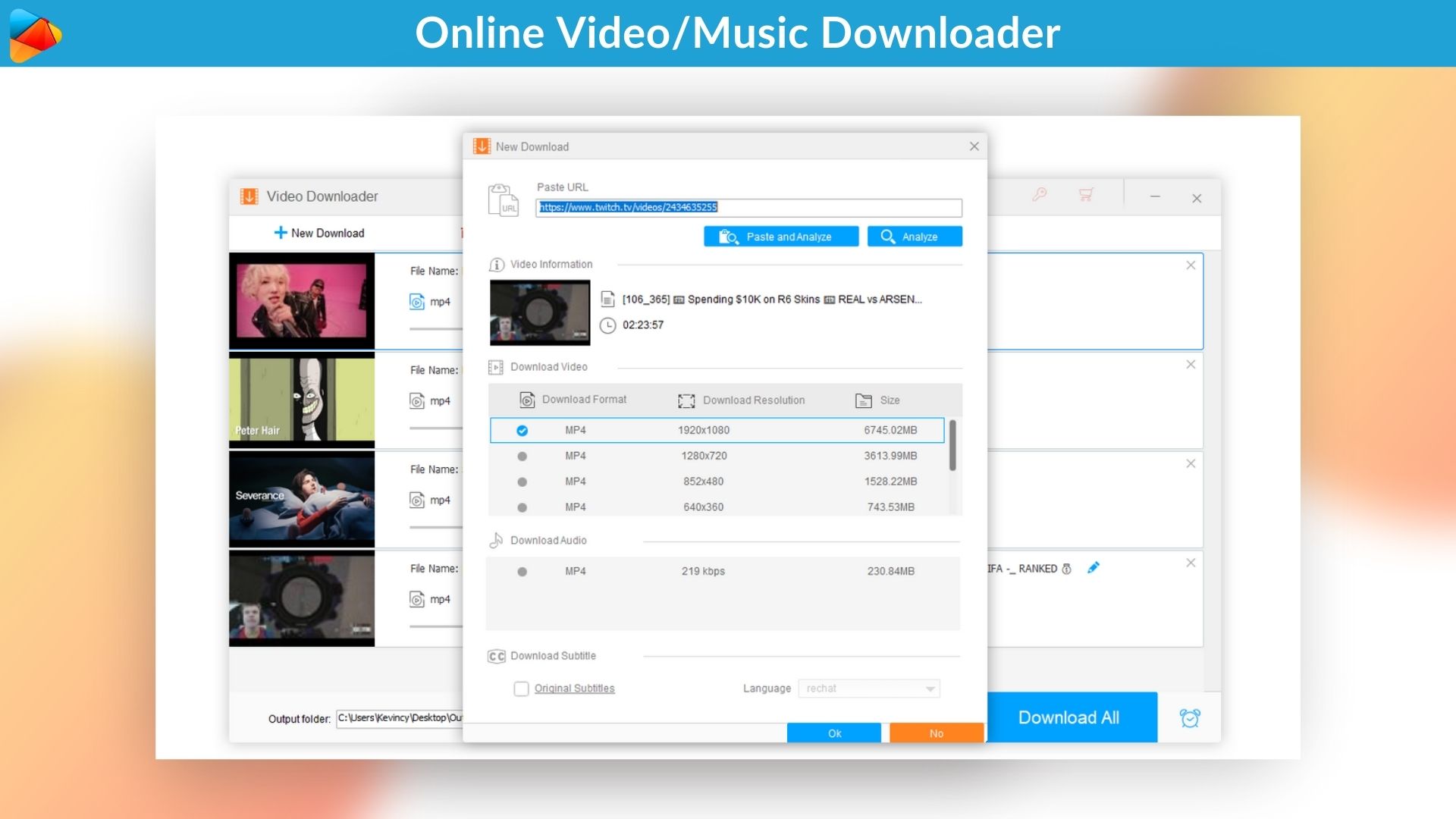Download your favorite videos/songs, playlists, and even subtitles from over 1,000 popular websites for offline viewing.